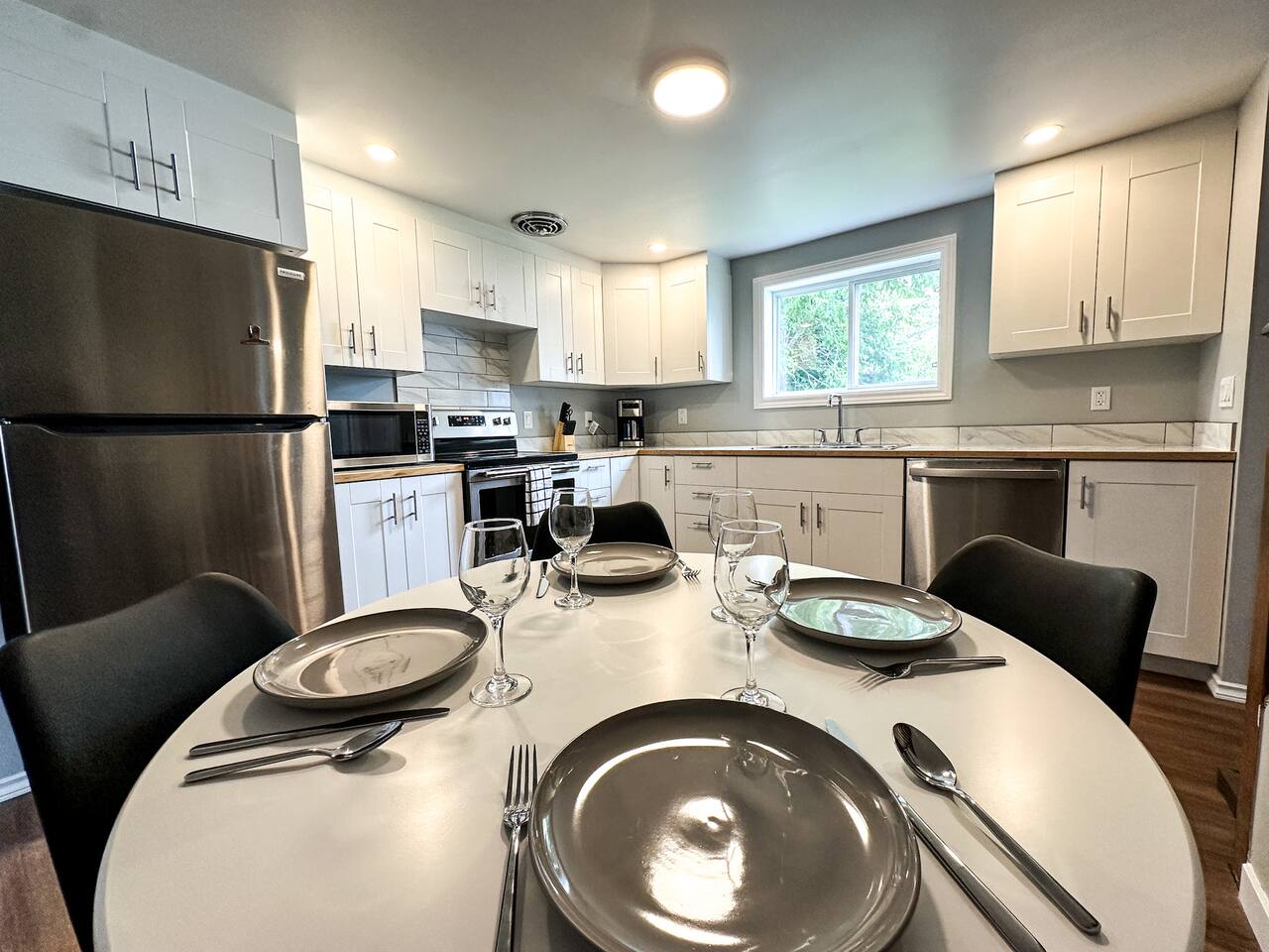 🛏 Bedrooms: Main Floor: Queen bedroom Second Floor: King bed Fresh linens and bath towels provided 🛁 Bathrooms: One full bathroom upstairs One half bathroom on the main floor Stocked with essentials including shampoo, conditioner, body wash, and makeup wipes 🍳 Kitchen & Dining: Fully equipped kitchen with stove, fridge, microwave, coffee maker, cookware & dishes Essentials included: olive oil, salt, pepper, coffee, sugar, Coffee Mate Dining area for meals or work 🛋 Living & Work Space: Cozy living room with smart TV for streaming Bright, inviting spaces perfect for relaxing or working In-unit laundry with detergent and dryer sheets 🌿 Location & Nearby Attractions: Boulevard Lake – 5 min drive Downtown Thunder Bay – 5 min drive Lakehead University – 10 min drive Regional Health & Science Center – 12 min drive Confederation College – 17 min drive Thunder Bay Airport – 20 min drive 🚗 Parking: Parking for 2 vehicles ✨ Additional Touches: Thoughtfully stocked with fresh linens, body and hand towels, face cloths, and makeup wipes Ideal for families, couples, or business travelers seeking a comfortable and convenient home base Enjoy a peaceful retreat with the best of Thunder Bay at your doorstep