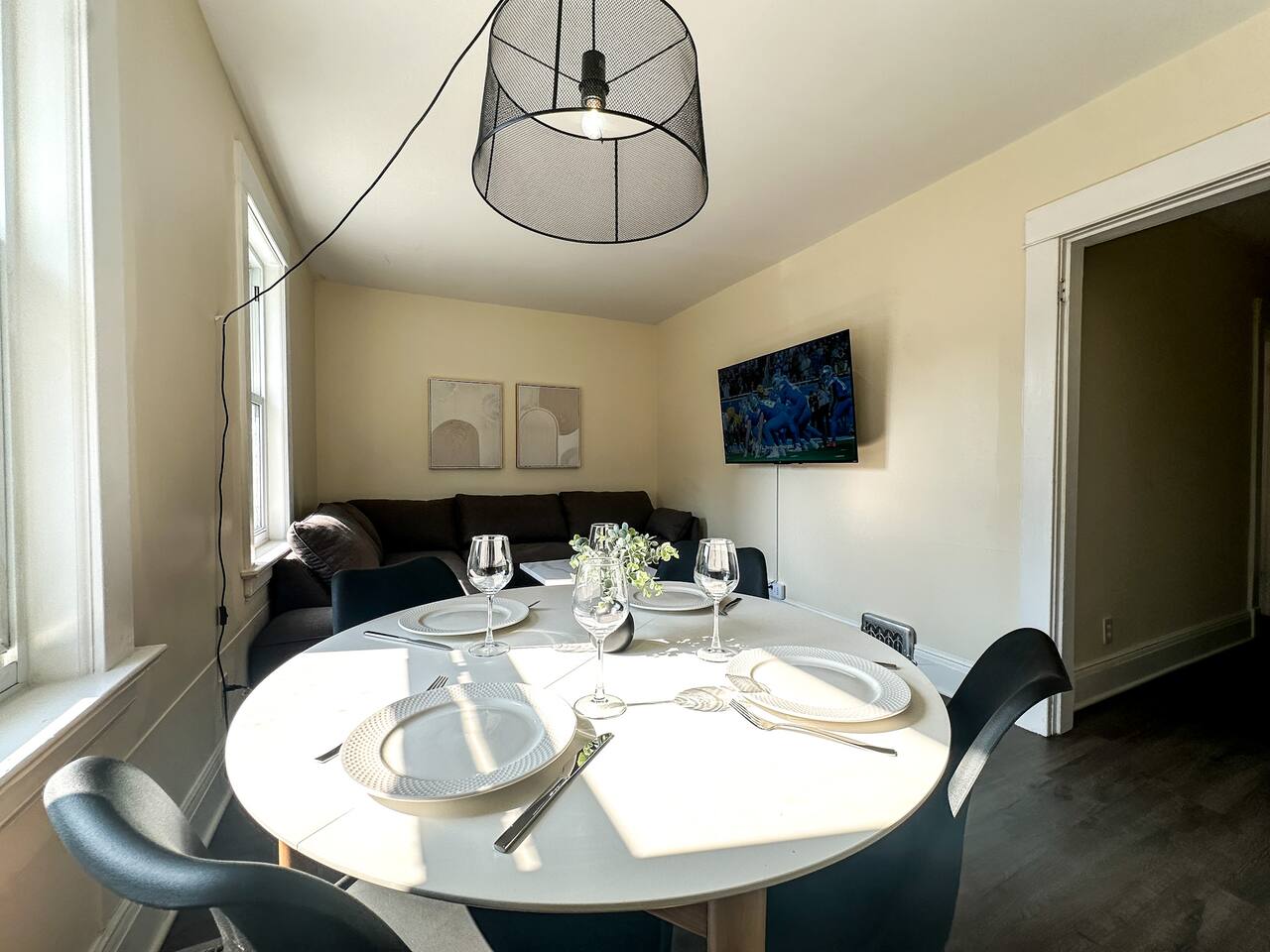 This bright and inviting apartment offers a comfortable, welcoming atmosphere with plenty of natural light. Here’s what you’ll find inside: 🛏 Bedrooms: Second Floor (Main Level): Primary bedroom with a king bed, fresh white linens, and storage Third Floor (Upper Level): Two additional bedrooms, each with a queen bed, fresh white linens, and bath towels provided 🛁 Bathrooms: Full bathroom on the main level Clean and stocked with essentials 🍳 Kitchen & Dining: Fully equipped kitchen with stove, fridge, microwave, coffee maker, cookware & dishes Dining area perfect for meals or catching up on work 🛋 Living Space: Cozy living room with comfortable seating Step out onto the balcony for fresh air and a relaxing spot Free Wi-Fi throughout the apartment 🌿 Outdoor Space: Shared backyard for morning coffee or evening relaxation 🚗 Parking & Location: One dedicated parking space located at the back lane of the apartment Some street parking is available, but only for a limited time Just 10 minutes from Thunder Bay International Airport Steps from Vickers Park Short drive to the International Friendship Gardens Easy access to Arthur Street’s restaurants, cafés, and grocery stores ✨ Additional Touches: Shampoo, conditioner, body wash, coffee, sugar, Coffee Mate, olive oil, salt, and pepper Perfect for families, groups, or business travelers Thoughtfully designed for comfort and convenience