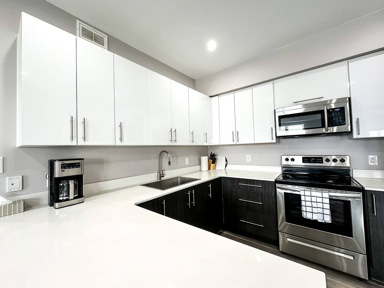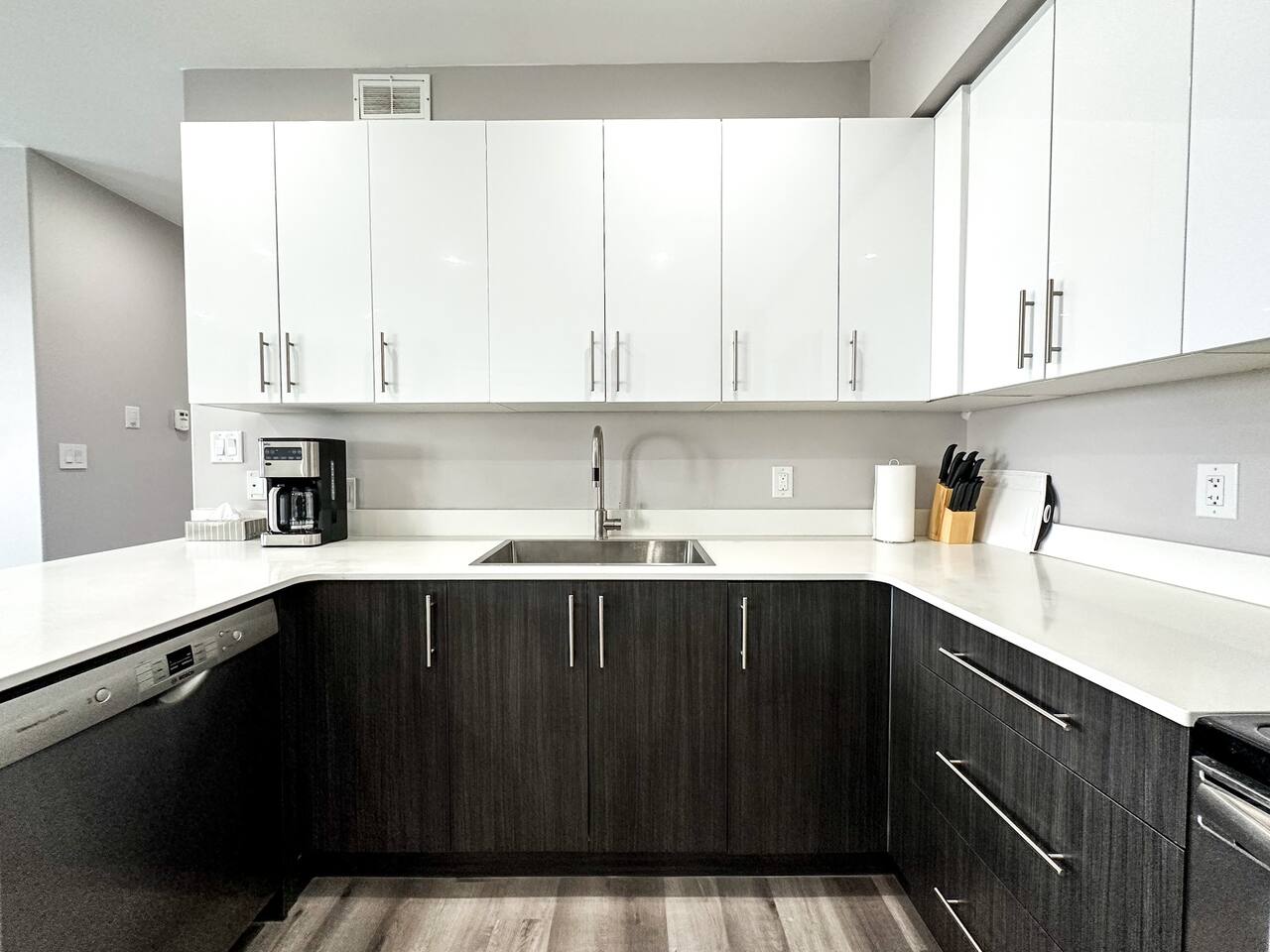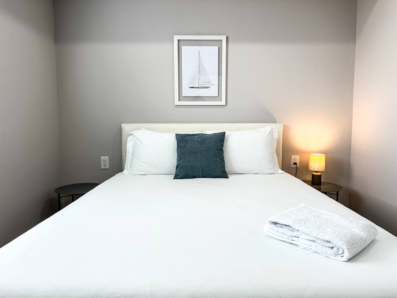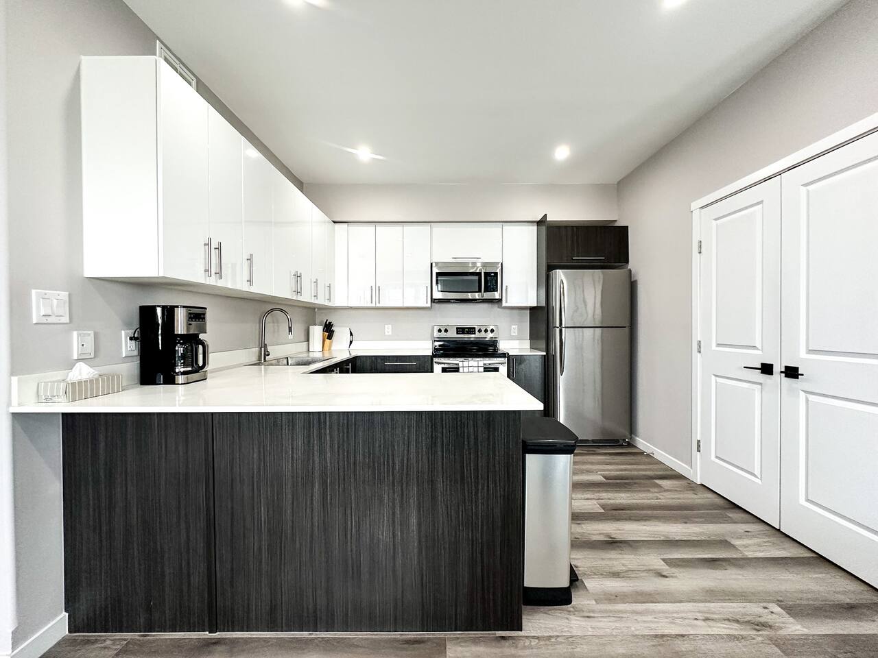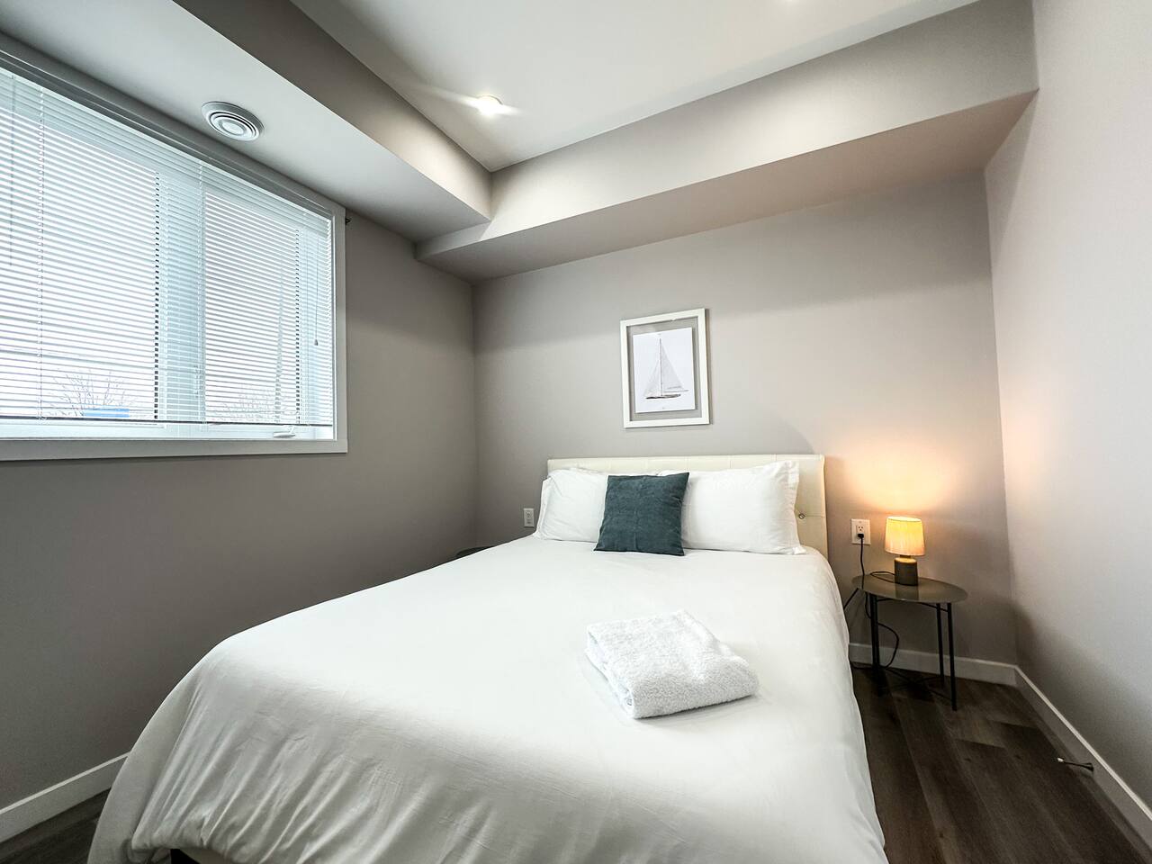 This bright and modern lower-level apartment is designed for comfort and convenience, perfect for short visits or extended stays. Here’s what you’ll find inside: 🛏 Bedrooms: Two private bedrooms with a King and Queen size bed, fresh white linens, and plenty of closet space 🛁 Bathroom: One full bathroom Fresh towels, a hairdryer, and basic toiletries provided 🍳 Kitchen & Dining: Fully equipped kitchen with stainless steel appliances: fridge, stove, microwave, dishwasher, and coffee maker Dishes, cookware, utensils, and basic cooking essentials provided Dining area great for meals or remote work 🛋 Living Space: Open-concept living room with comfortable seating Smart TV for streaming your favorite shows Free high-speed fiber Wi-Fi throughout the unit 🧺 Laundry: In-suite washer and dryer with detergent provided 🚗 Parking & Location: 1 Free designated parking space included. Additional street parking is also available but keep an eye out for the signs Located in Thunder Bay’s vibrant Waterfront District Steps from downtown restaurants, coffee shops, and local boutiques Short drive to: • Marina Park (3 min) • Hillcrest Park (5 min) • Thunder Bay Art Gallery (10 min)