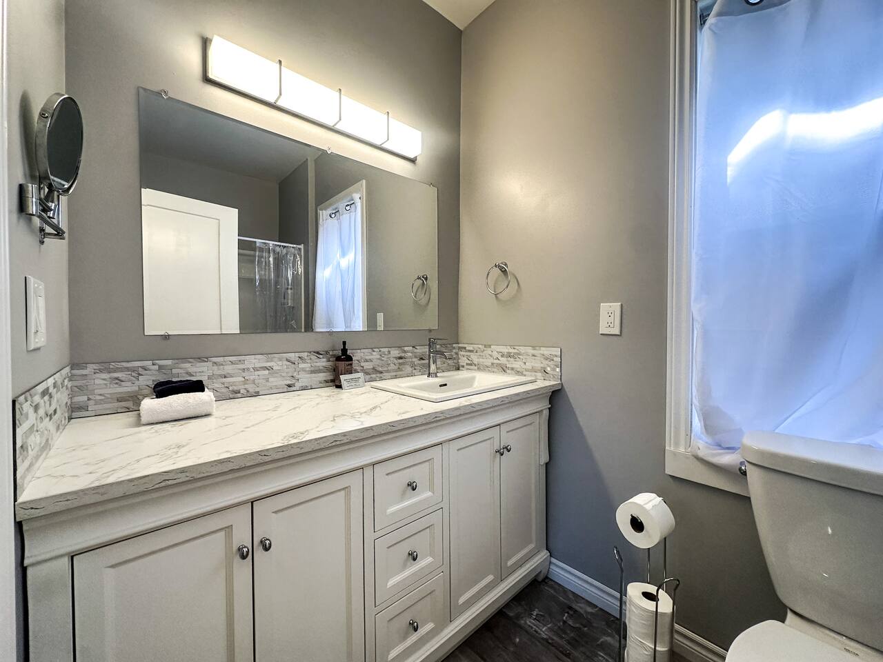 Bright and comfortable 1-bedroom suite in Fort William featuring a king bed, cozy living room, full kitchen, and access to a shared backyard. Located just 10 minutes from Thunder Bay International Airport. Steps from Vickers Park and a short drive to the International Friendship Gardens. Enjoy easy access to Arthur Street with a wide variety of restaurants, cafés, and grocery stores. Perfect for couples, solo travelers, or business trips.
