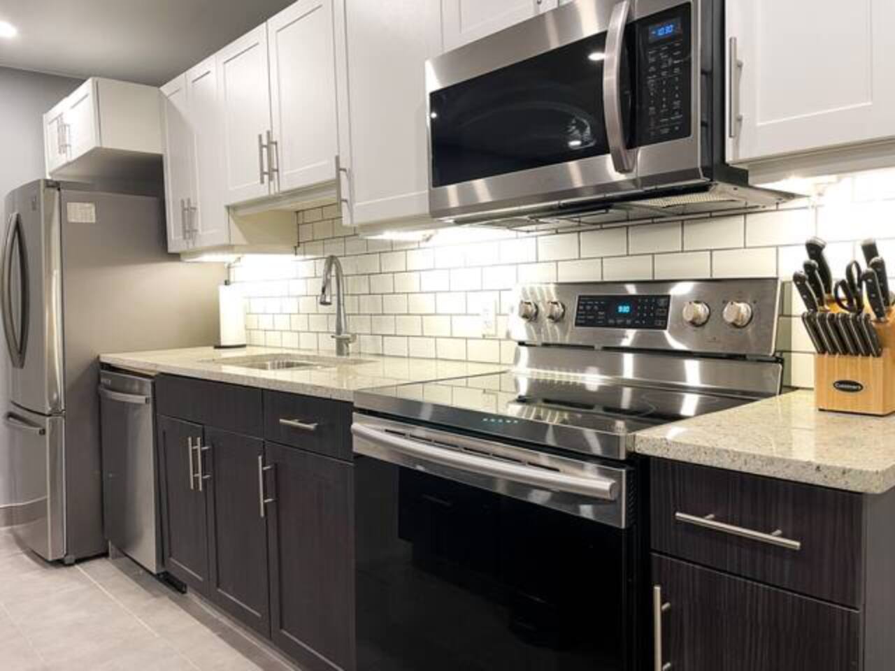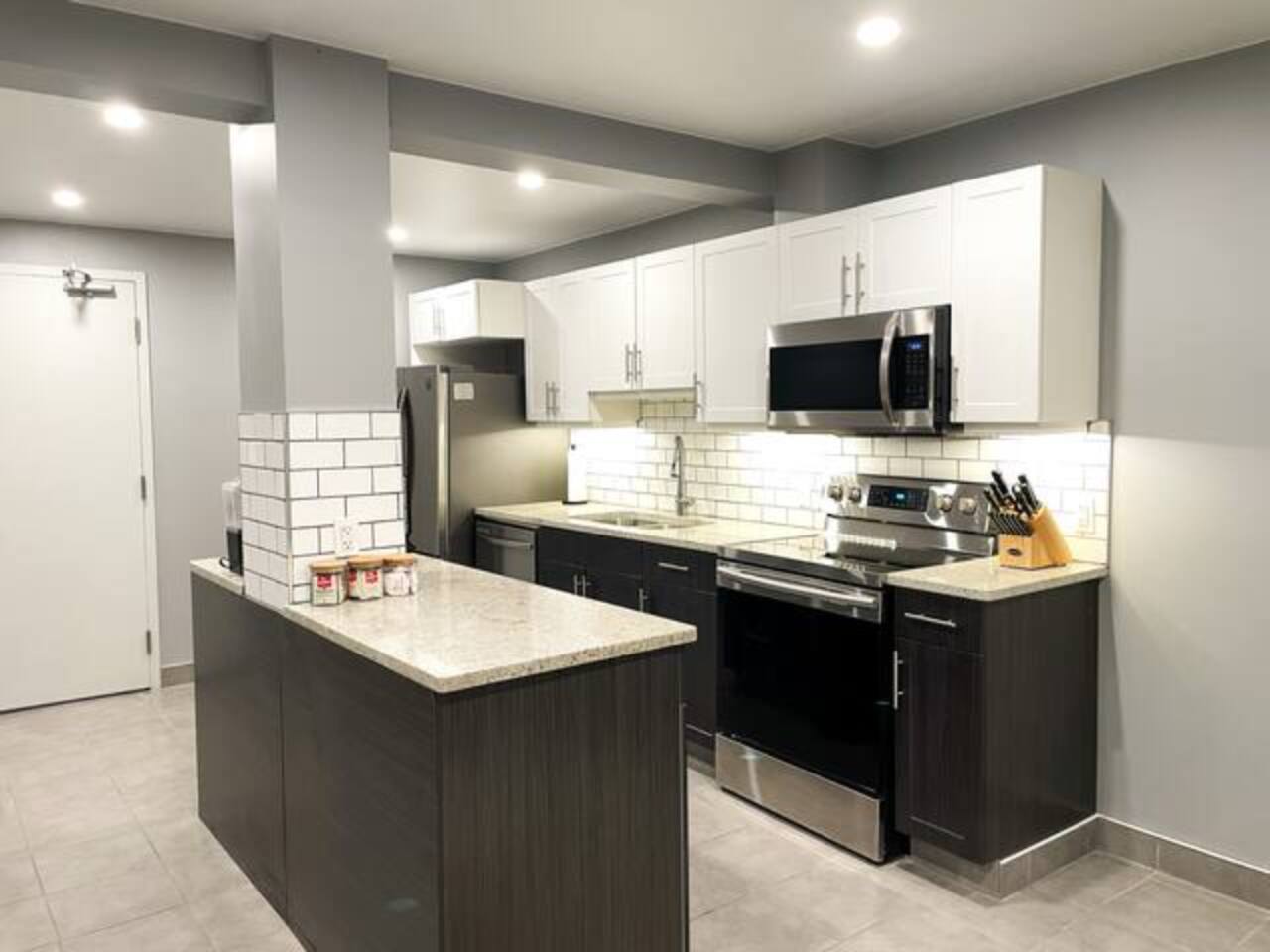 Bedroom: One bedroom with a King size bed, fresh white linens, and closet space for your belongings 🛁 Bathroom: One modern full bathroom with a tub/shower combo Fresh towels, hairdryer, and basic toiletries provided 🍳 Kitchen & Dining: Open-concept kitchen with stainless steel appliances, granite countertops, dishwasher, and microwave Fully stocked with cookware, dishes, utensils, coffee maker, and kettle Dining area great for meals or remote work 🛋 Living Space: Spacious living area with cozy seating and a welcoming, modern feel Smart TV for streaming and free high-speed fiber internet 🧺 Laundry: Shared laundry located within the building (detergent provided) 🚗 Parking & Location: Free designated parking space for one vehicle Additional paid street parking nearby Centrally located in the Waterfront District—steps from local restaurants, coffee shops, and boutiques Short drive to: • Marina Park (3 min) • Hillcrest Park (5 min) • Lakehead University (10 min) ✨ Additional Touches: Private entrance and self check-in Central heating for year-round comfort Locally curated digital guidebook with our favorite Thunder Bay spots