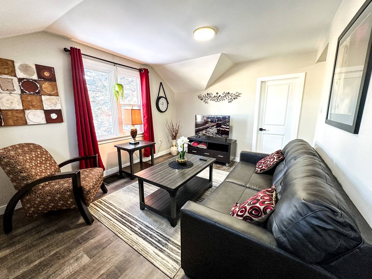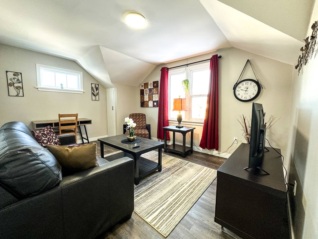 Our stay here was absolutely perfect - I cannot recommend the unit or the hosts highly enough😊 The unit had everything we could need, and we felt right at home. The beds were very comfortable and the kitchen was well stocked. The location is excellent - central yet tucked away on a quiet little street. The hosts were polite and professional, and check in and check out were a breeze. I would not hesitate to stay here again - or at any of Sleeping Giant BNB’s other units.