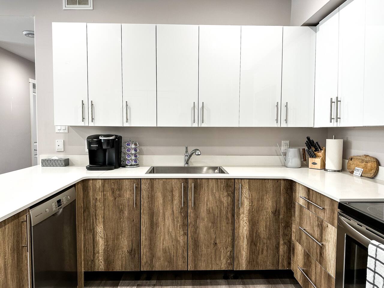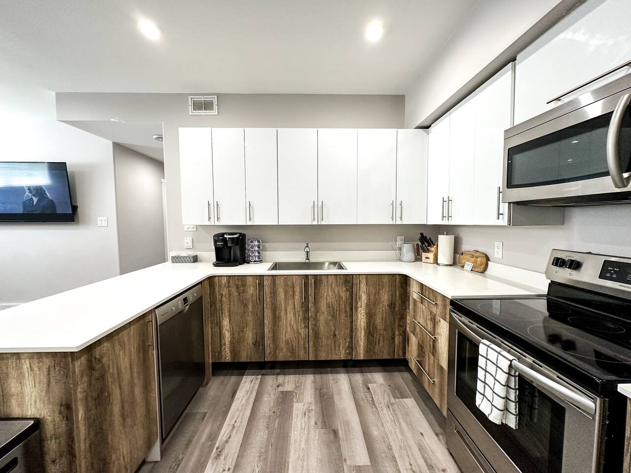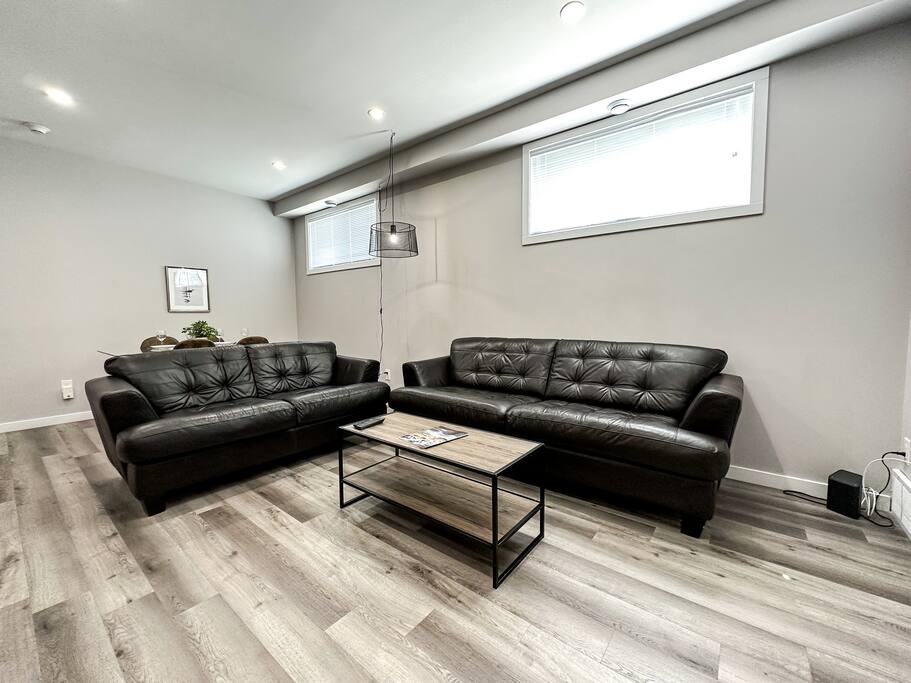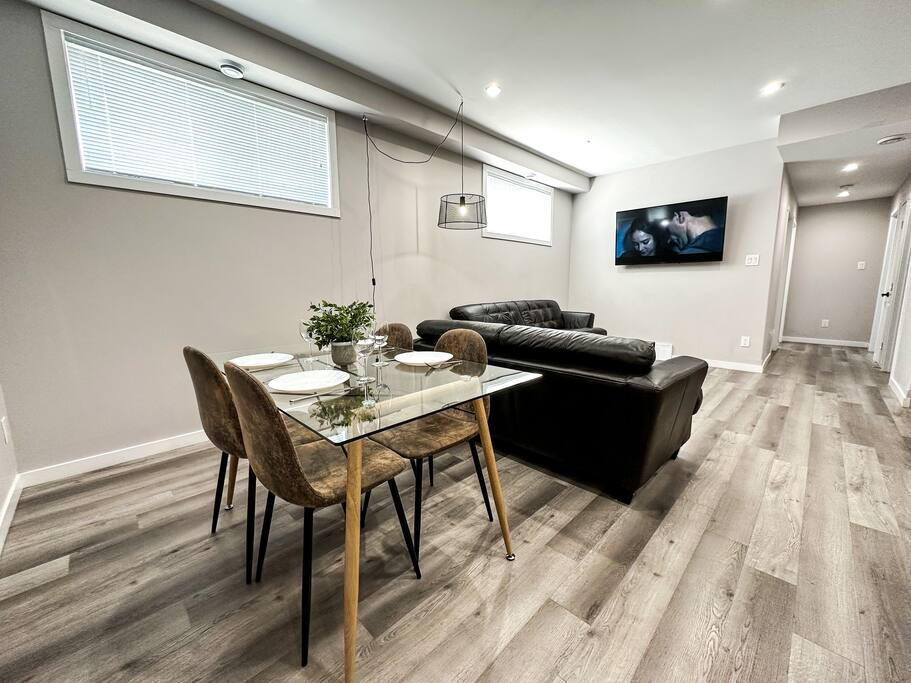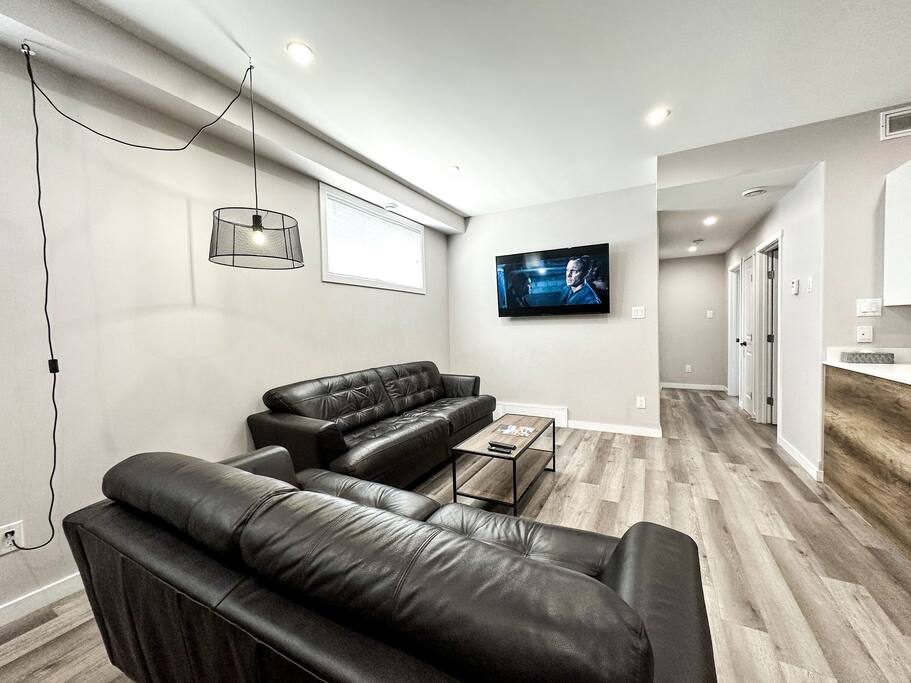 This bright and modern lower-level apartment is designed for comfort and convenience, perfect for short visits or extended stays. Here’s what you’ll find inside: 🛏 Bedrooms: Two private bedrooms with cozy queen-size beds, fresh white linens, and plenty of closet space 🛁 Bathroom: One full bathroom Fresh towels, a hairdryer, and basic toiletries provided 🍳 Kitchen & Dining: Fully equipped kitchen with stainless steel appliances: fridge, stove, microwave, dishwasher, and coffee maker Dishes, cookware, utensils, and basic cooking essentials provided Dining area great for meals or remote work 🛋 Living Space: Open-concept living room with comfortable seating Smart TV for streaming your favorite shows Free high-speed fiber Wi-Fi throughout the unit 🧺 Laundry: In-suite washer and dryer with detergent provided 🚗 Parking & Location: 1 Free designated parking space included. Additional street parking is also available but keep an eye out for the signs Located in Thunder Bay’s vibrant Waterfront District Steps from downtown restaurants, coffee shops, and local boutiques Short drive to: • Marina Park (3 min) • Hillcrest Park (5 min) • Thunder Bay Art Gallery (10 min) ✨ Additional Touches: Private entrance and self check-in Central heating for year-round comfort Locally curated digital guidebook with recommendations